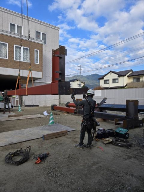 現場における鉄骨工事や金物工事など。 |