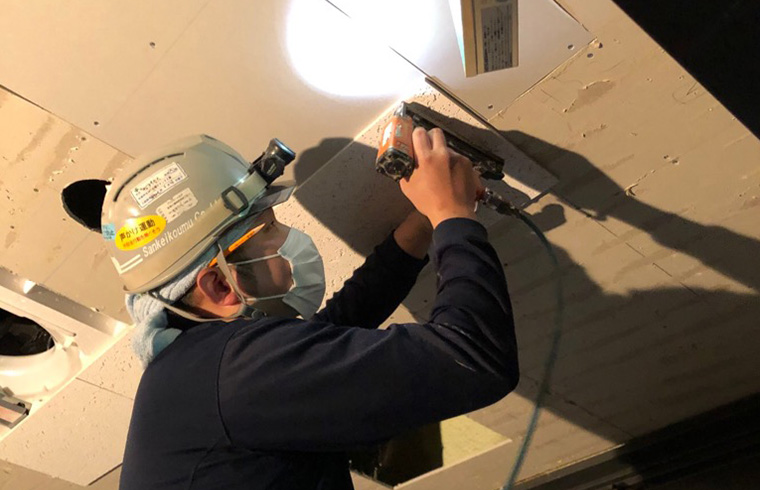 どんな仕事にも、面白さや、奥の深さ、そして知識や技術が求められ、簡単な仕事は一つもありません。それは、この軽鉄ボード工事も同じことです。確かな技術が求められるからこそ、満足感や達成感が生まれます。現場の状況によって、その場でものづくりをしていく感覚が、軽鉄ボード工事の醍醐味の一つです。